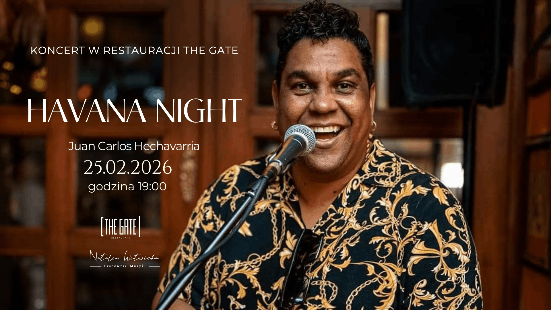 Na scenie The Gate wystąpi Juan Carlos Hechavarria – charyzmatyczny wokalista i perkusjonista z Kuby, który rozgrzeje atmosferę pulsującą energią i gorącym brzmieniem.