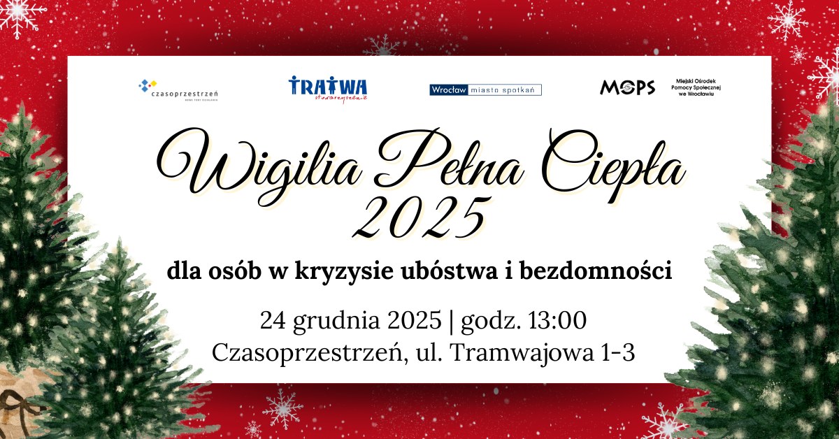 Jak co roku, w Wigilię Bożego Narodzenia otwieramy drzwi dla osób w kryzysie ubóstwa, bezdomności i samotności. Chcemy, by każdy mógł spędzić ten wyjątkowy dzień przy wspólnym stole, w atmosferze życzliwości i spokoju.
